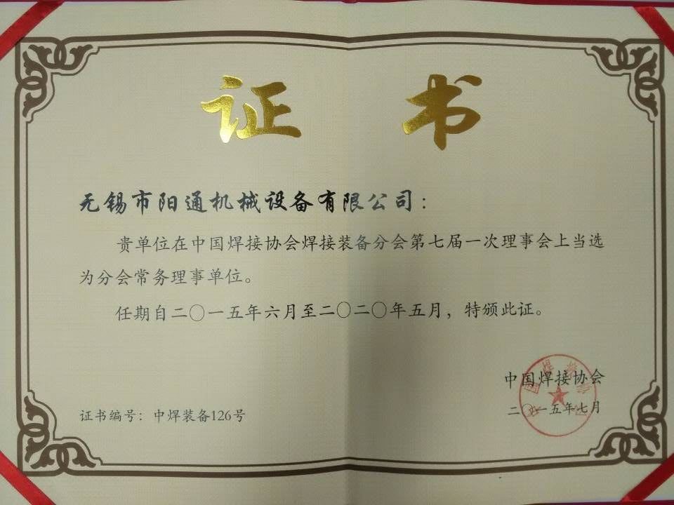 熱烈祝賀無(wú)錫市陽(yáng)通機(jī)械設(shè)備有限公司連任中國(guó)焊接協(xié)會(huì)焊接裝備分會(huì)常務(wù)理事單位